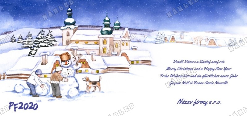 Expres novoročenka s dětmi, které na vsi staví sněhuláka