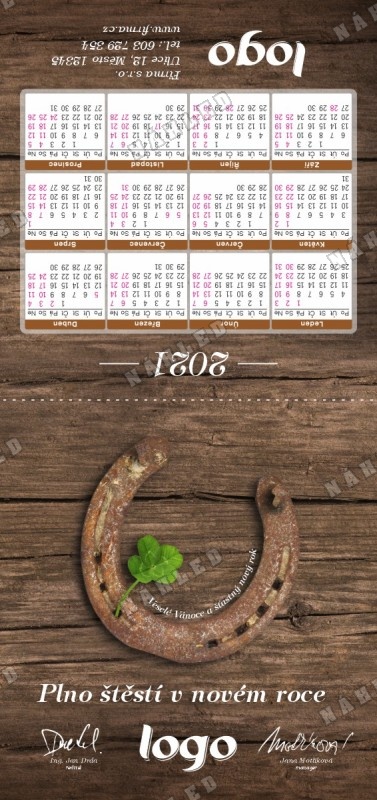Toto vánoční přání je skládací ve formě karty s kalendářem a úpravou pro přeložení k postavení na stůl jako "Áčko". Přání je do obálky DL. Námi vyráběné novoročenky a vánoční přání jsou tištěny na kvalitním 300g křídovém papíře.