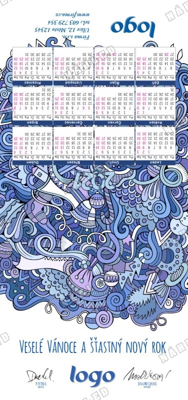 Toto vánoční přání je skládací ve formě karty s kalendářem a úpravou pro přeložení k postavení na stůl jako "Áčko". Přání je do obálky DL. Námi vyráběné novoročenky a vánoční přání jsou tištěny na kvalitním 300g křídovém papíře.