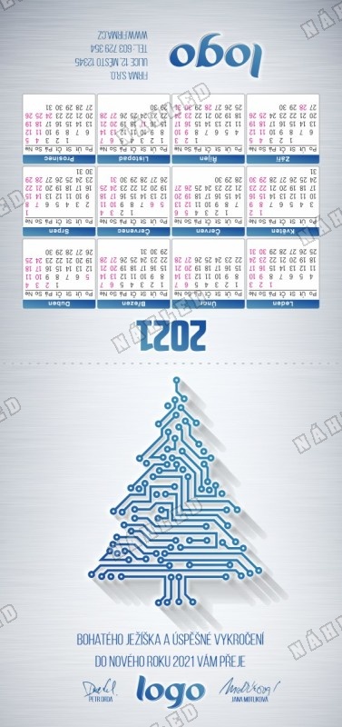 Toto vánoční přání je skládací ve formě karty s kalendářem a úpravou pro přeložení k postavení na stůl jako "Áčko". Přání je do obálky DL. Námi vyráběné novoročenky a vánoční přání jsou tištěny na kvalitním 300g křídovém papíře.