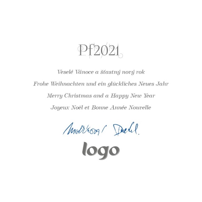 Toto vánoční přání je otevírací ve formě knížky (s textem přání a logo je uvnitř). Přání je do čtvercové obálky. Námi dodávané novoročenky a vánoční přání jsou tištěny na kvalitním 300g křídovém papíře.