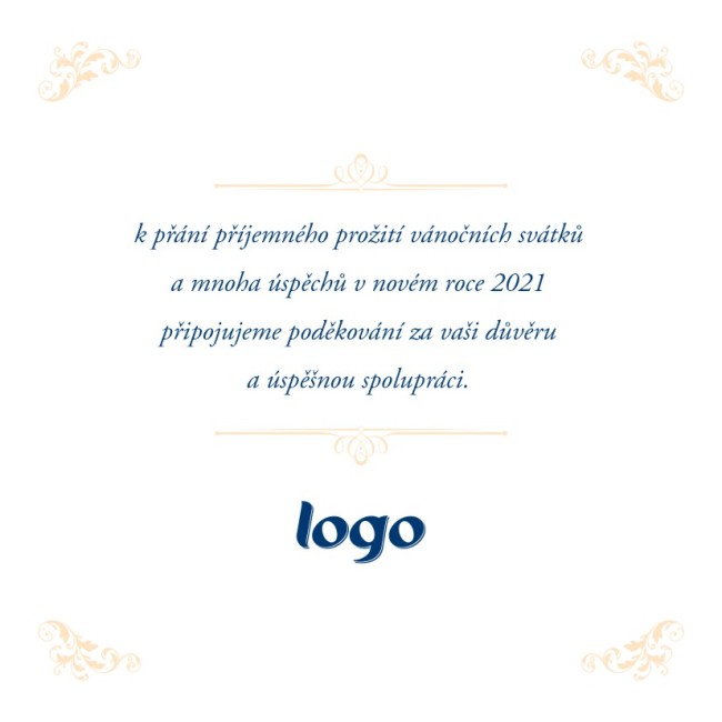 Toto vánoční přání je otevírací ve formě knížky (s textem přání a logo je uvnitř). Přání je do čtvercové obálky. Námi dodávané novoročenky a vánoční přání jsou tištěny na kvalitním 300g křídovém papíře.