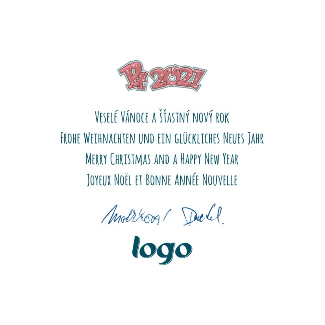 Toto vánoční přání je otevírací ve formě knížky (s textem přání a logo je uvnitř). Přání je do čtvercové obálky. Námi dodávané novoročenky a vánoční přání jsou tištěny na kvalitním 300g křídovém papíře.
