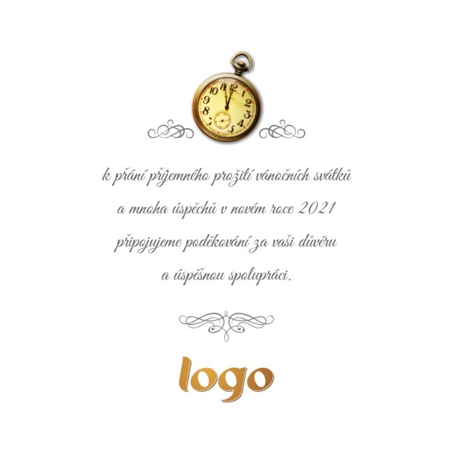 Toto vánoční přání je otevírací ve formě knížky (s textem přání a logo je uvnitř). Přání je do čtvercové obálky. Námi dodávané novoročenky a vánoční přání jsou tištěny na kvalitním 300g křídovém papíře.
