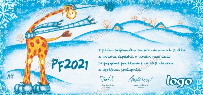 Tuto novoročenku můžete objednat také jako elektronickou pro rozesílání e-mailem.  Typ novoročenky zda požadujete tištěnou nebo elektronickou, případně kombinaci upřesníte v pravém sloupci v 1. bodě.